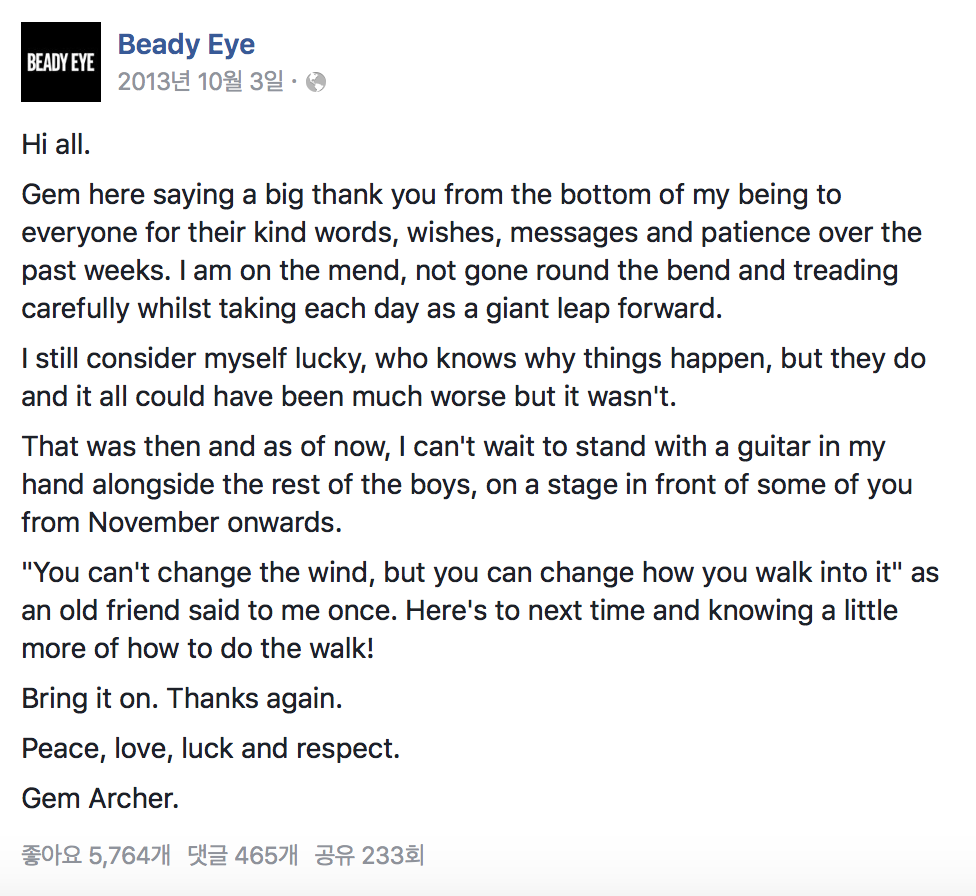 일반적으로 봤을 때: 화를 내게 할 생각은 없지만, 만약 사람들이 오아시스 노래만 원한다면? 이제, 해체한 지가 거의 5년 여가 다 되어가는데…